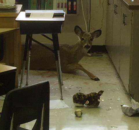 Deer Crashes Through Window Into Ajax Classroom