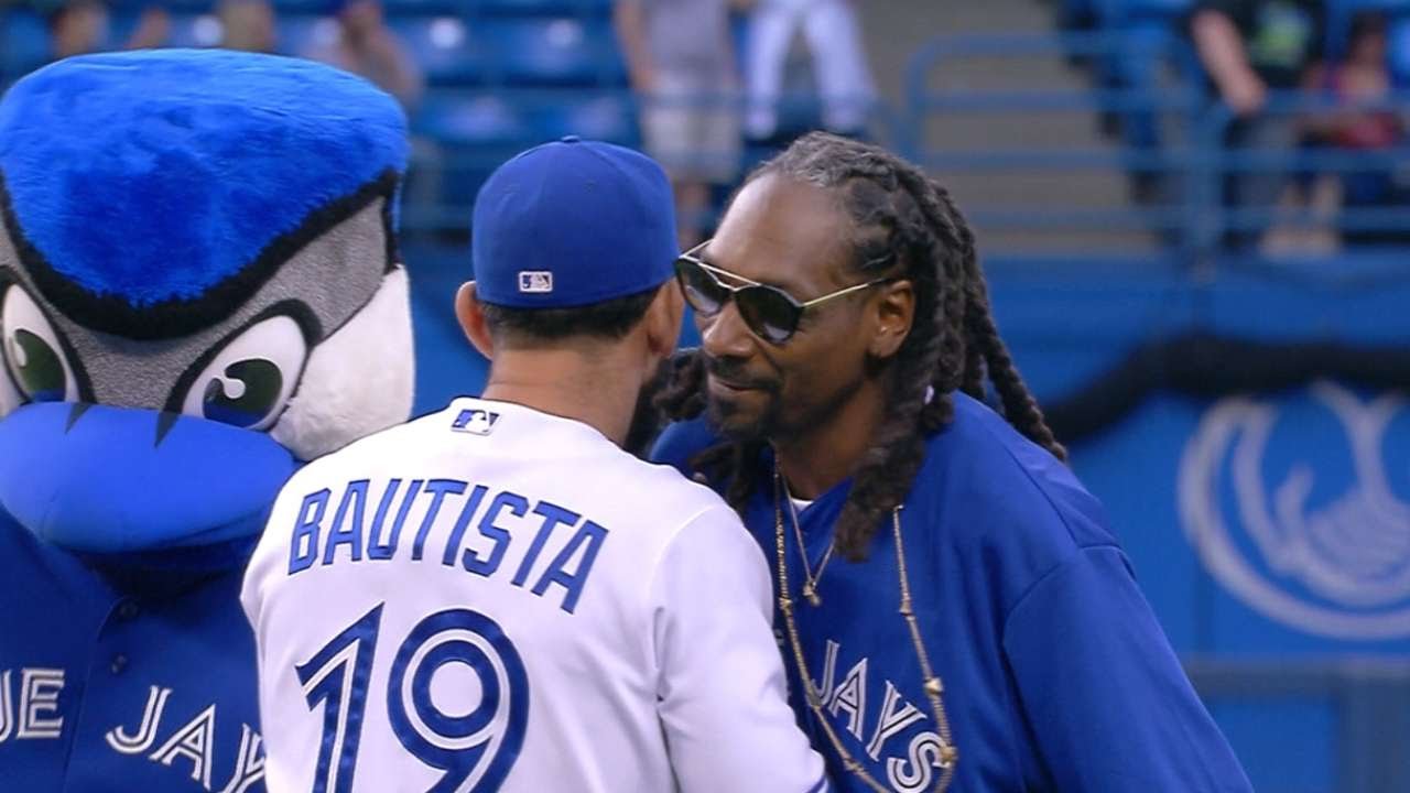 Snoop Dogg Throws First Pitch To Jose Bautista At Rogers Centre Blue Jays